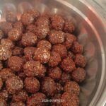 Finally, white sesame seed ladoos completed the meal. It’s made by mixing jaggery, ghee, and white sesame seeds. The children enjoyed the nutty, sweet, and slightly earthy notes, combined with a satisfying chewy and slightly crunchy texture. The children enjoyed this hearty and filling addition, which brought a sense of completeness to the feast.